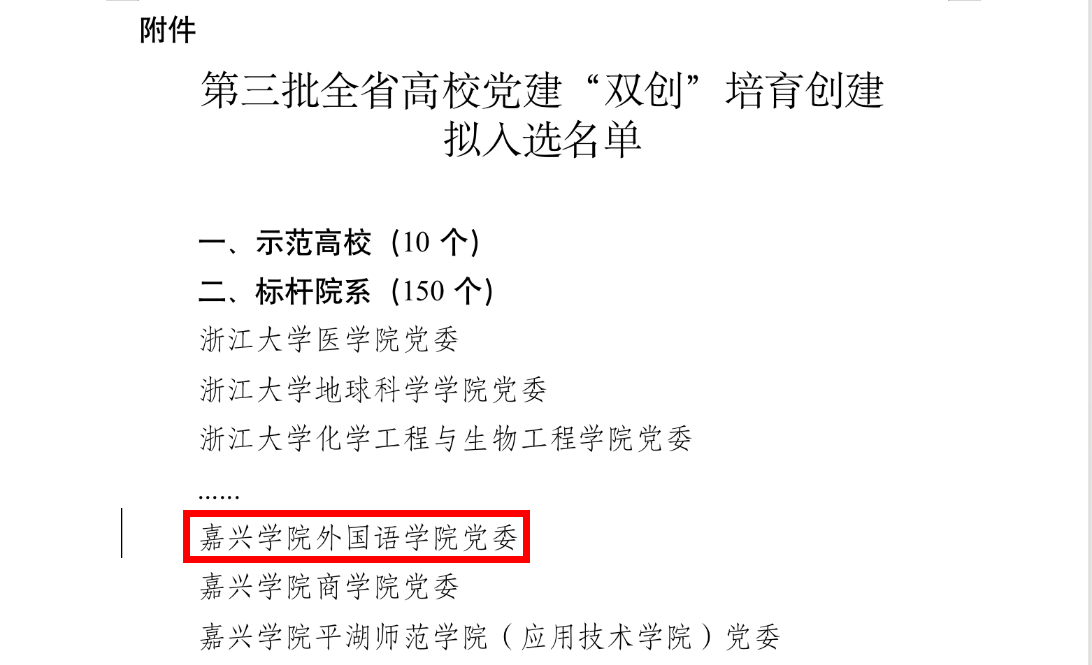 近日,浙江省委教育工作委员会办公室公布了第三批全省高校党建“双创”培育创建对象名单。91短视频 党委入选第三批浙江省高校党建标杆院系培育创建单位。