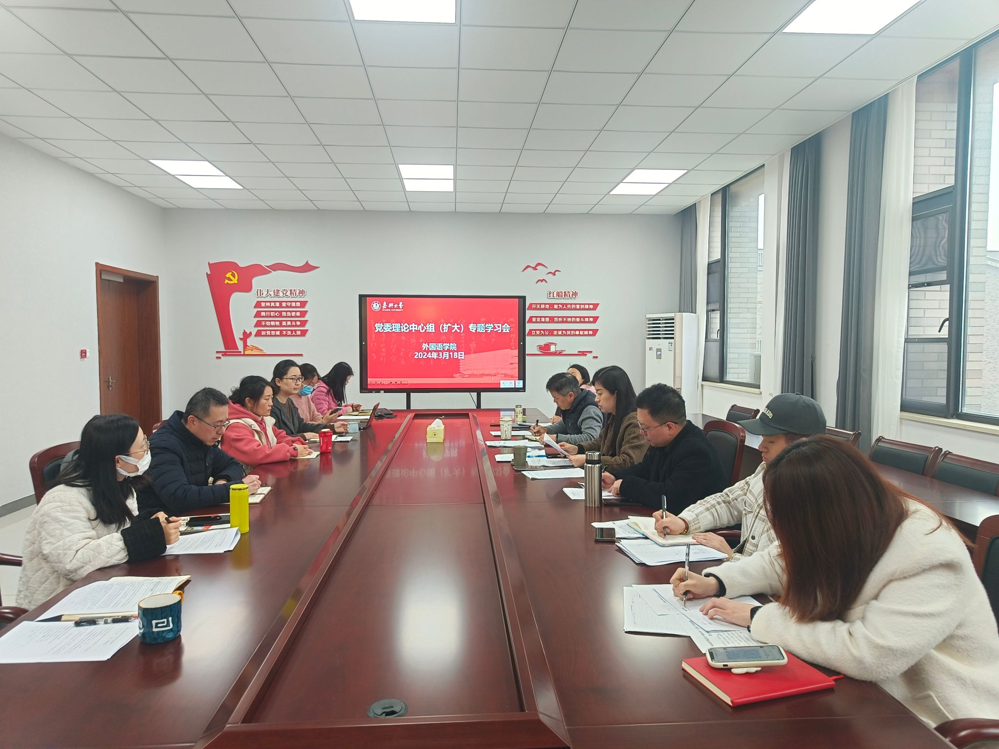 3月18日,91短视频 在兴德楼南楼516召开党委理论学习中心组(扩大)会议,深入学习习近平总书记在全国两会期间的重要讲话精神和十四届全国人大第二次会议精神、全国政协十四届第二次会议精神以及全省、全市领导干部会议精神,并就学习贯彻作出工作部署。学院党委书记周钰主持会议并领学,学院党政班子成员、科级干部、党支部书记、系主任以及民主党派代表参加学习会。