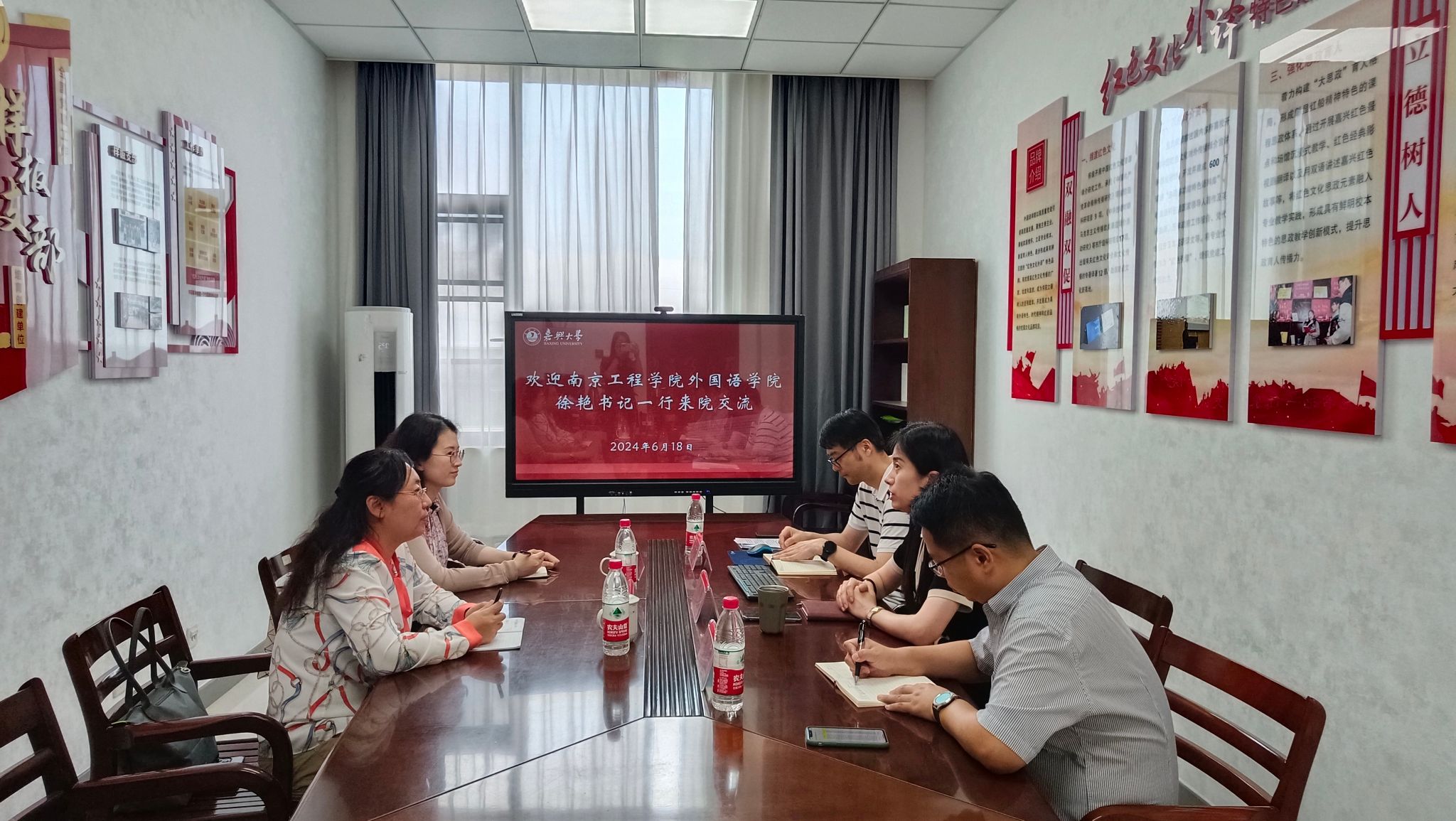 6月18日下午,南京工程学院91短视频 党总支书记徐艳、支部书记何慧文一行来学院交流党建工作。91短视频 党委书记周钰、党委副书记张啸峰以及第二党支部委员鲁俊丰参加交流会。