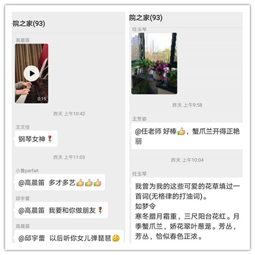 三月七号一大早,学院微信群里热闹非凡,女神们迫不及待提前开始了庆祝的节奏,以图片、视频、抖音、小程序等形式纷纷展示自己的“宅家神器”。先是一波美食、家务、教娃训狗, 接着一波花草园艺、手工创意,然后是一波琴棋书画、吟诗作赋......一个比一个精彩。
