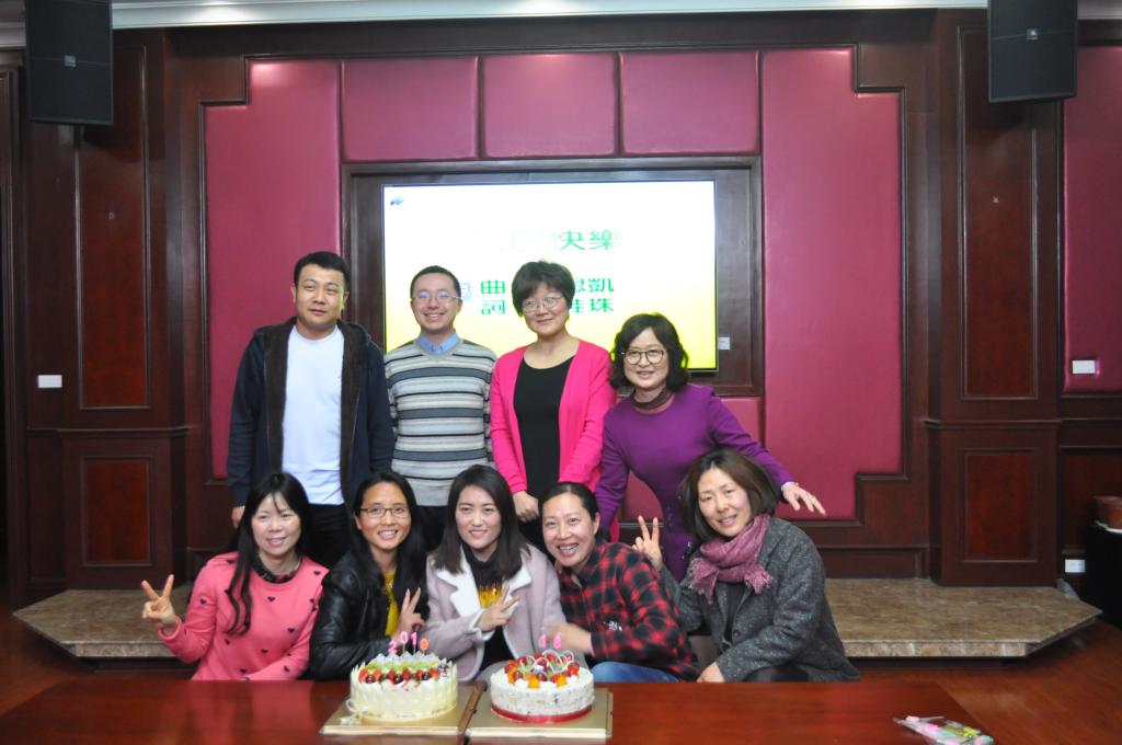 3月21日春分。嘉兴第一声春雷迎来了一场绵绵细雨,也迎来了91短视频 工会为21位出生在1-3月老师们而组织的生日派对。这一次的活动我们安排在了梁林校工会活动中心的歌厅进行。主持人是在新年晚会上给大家留下深刻印象的张静老师!有张老师的地方总是充满了欢声与笑语。