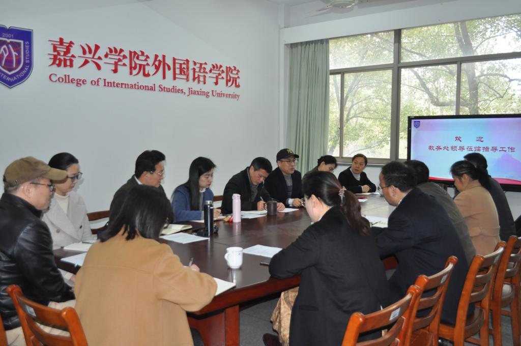 艾宁处长在听完汇报后,充分肯定学院的工作思路和良好的发展态势,并对学院的教学工作提出了三点要求:一是要在充分调研嘉兴本地人才需求的基础上做好新专业的申报和师资准备工作,可以尝试先从开设微专业开始;二是要将课程建设、实践基地建设和教学成果奖的申报相结合,未雨绸缪、多方联动,行成工作合力,助推学院顺利申报英语专业翻译硕士点;三是要结合学院工作实际,对学校即将进行的考核评价体制提出建设性意见。
