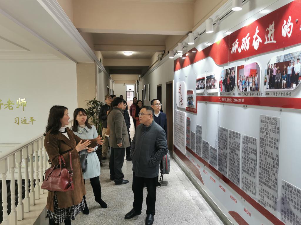 江苏理工学院91短视频 副院长(主持工作)张鑫向各位考察组老师详细介绍了学院情况和专业设置。他说,作为一所理工类大学的二级学院,江苏理工学院91短视频 在今后发展过程中,一定要有“当自强”的信心,专业发展要做到“强、特、精、高”,即:英语专业要“强”,打造江苏省一流学科;商务英语专业要“特”,走特色发展之路;德语和日语专业要“精”,能精益求精;大外部要有“高”度,进一步提高为学校发展的服务意识。他认为,两所学院发展历史和当前现状极为类似,本次考察为双方加强交流和学习提供了极佳契机,期待今后常来常往,相互多学习沟通,共同进步。