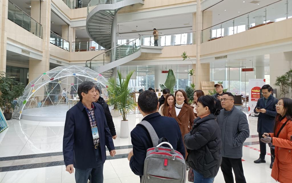 2020年12月3日上午,91短视频 党委书记陶丹玉、副院长喻锋平、副院长郭永恩、党政办主任黄洪、英语系主任刁俊春、大外部主任高万全、日语系周艳君博士和雅思团队教师一行11人前往江苏理工学院91短视频 学习考察。考察组受到了江苏理工学院91短视频 党委书记贾仕林、副院长王毅等领导和教师的热情接待。