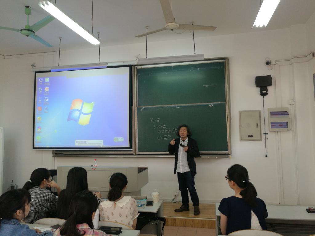 与盛校长交流后,江藤校长还拨冗与91短视频 日语专业学生见面。见面会由日语系主任刘韵超主持。在学生热烈鼓掌声中开始的见面会上,江藤校长首先介绍了二松学舍大学的历史,之后介绍了留学二松学舍大学的学科布局,最后就江藤校长自己的学科领域进行了介绍。他真诚欢迎学生们前来二松学舍大学留学,二松学舍大学也将一如既往以最大的热忱关爱和帮助同学们。