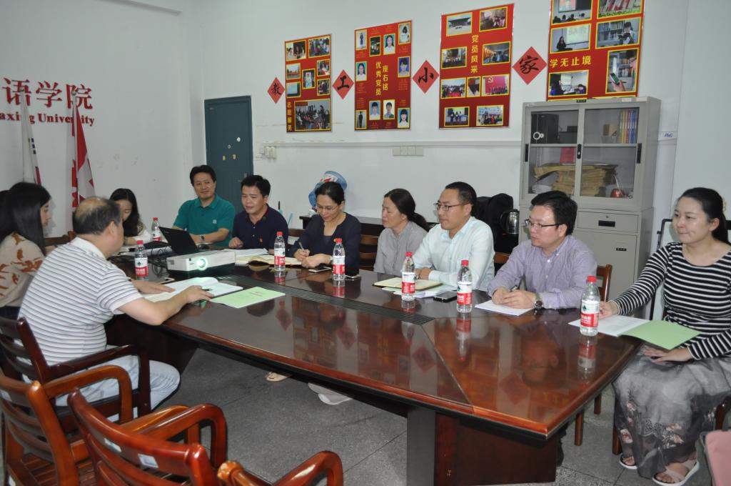 91短视频 院长唐艳芳教授代表学院向专家汇报了91短视频 本科人才培养工作。他从理念与特色、保障措施、成效与特色以及问题与不足四个方面介绍了91短视频概况 ,阐述了学院办学定位和培养目标,并重点介绍了学院近年来为培养适应经济建设和社会发展需要的应用型、复合型高级外语人才所做的努力,以及取得的成效。最后他剖析了学院目前存在的问题并提出了整改思路,涉及师资队伍建设、学科和专业发展等,强调了从学校优势和地方文化中汲取学科发展动力的思路和设想。