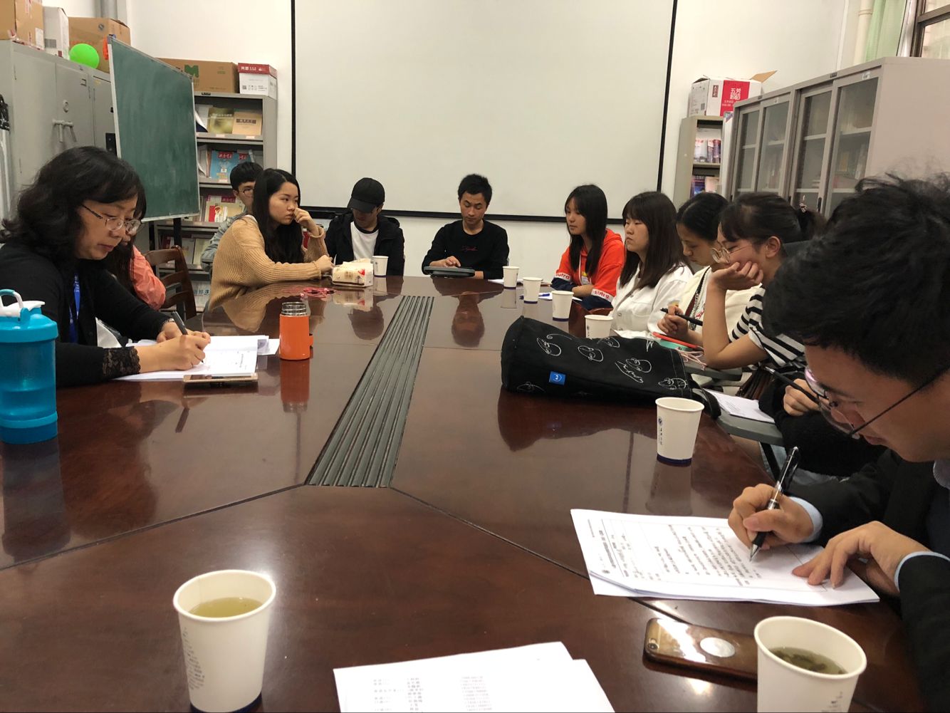 4月23日下午,此次本科专业审核评估预评估工作的学生座谈会在外语楼101会议室召开。浙江师范大学91短视频 院长洪明教授与来自嘉兴学院文法学院和91短视频 的二十余位同学就学生的职业规划、人才培养方案的课程设置等问题进行深入交流。会议中,同学们对专业的课程体系构成、实践实习的组织等内容表示满意,同时也希望学院在个性化培养方案的设置、课程的选择方面能进一步丰富和完善,更进一步地满足学生职业规划和成长成才的需求。