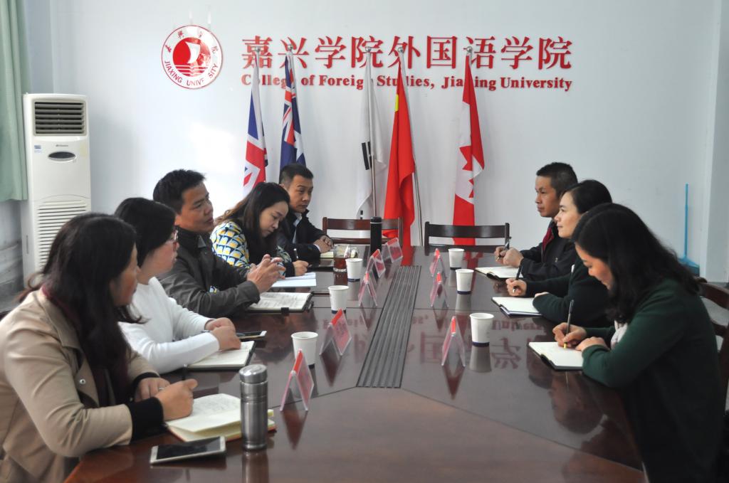唐艳芳院长代表学院对来访客人表示欢迎,并介绍了学院的发展历史、基本情况和发展思路。刘成萍教授也对四川民族学院91短视频 的历史和基本情况做了介绍,她认为学校所处的四川西部地区地广人稀,地理位置偏僻,经济相对落后,学院外语专业的发展遇到了瓶颈,希望通过交流得到启发,为英语学科的发展谋求更广阔的出路。唐艳芳院长提出,二级学院的发展一定要与学校的发展相结合。嘉兴学院是一所应用型高校,91短视频 的发展也要与地方经济特色接轨,谋划重点打造几个团队,为地方经济发展做好语言服务工作;同时,学院要获得发展,必须立足于学科建设,这是学院向学校争取支持的重要保证,我学院的具体思路和做法就是要依托学校红船研究中心,打造科研团队,将红船研究中心的理论成果推向国际,向世界讲好中国故事。随后,双方就人才培养方案改革、专业课程建设改革、校地合作运行方式、师资队伍建设、实验室和实习基地建设、第三方教学质量评价体系、专业教材建设等方面的内容进行了深入交流。