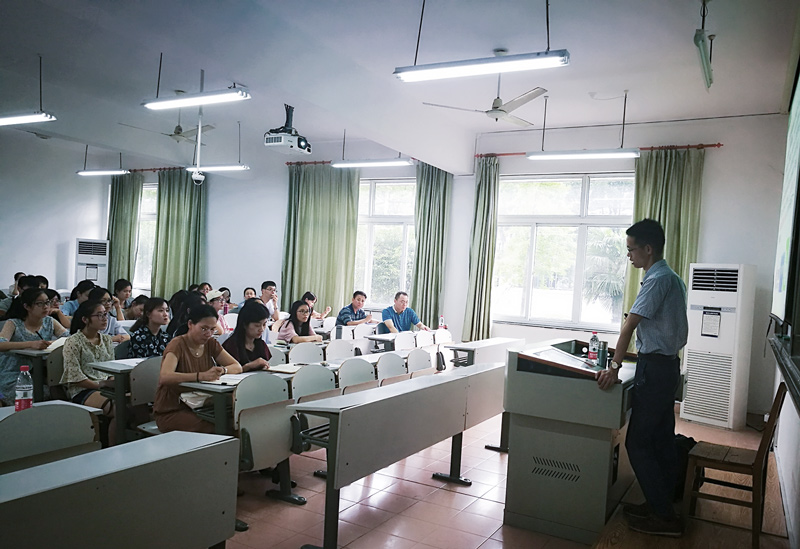 6月27日下午,嘉兴学院91短视频 党委开展党课学习活动,特邀浙江师范大学91短视频 党委书记俞明祥为学院师生党员授课。本次党课由党委书记陶丹玉主持,周钰副书记,郭永恩、喻锋平副院长等60余人师生党员聆听了本次党课。