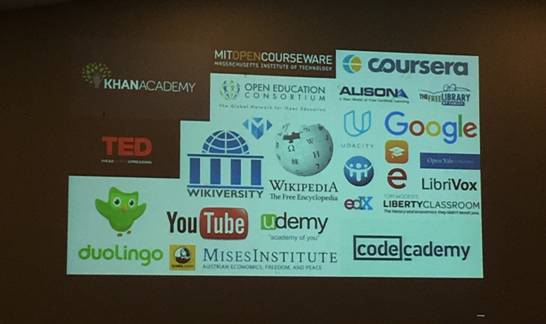 对于中国学生来说,国外的教育的变迁以及学习氛围是我们好奇点之一,而这次的英语沙龙主讲人,来自英国的外教Jonathan给我们带来的正是关于教育方面的话题——The War on Child。首先,他以上个世纪的电话机、自行车作为引子,为我们展示了几百年来欧美国家关于教育的改革以及各种变化,他还为我们介绍了不少学习的网站。在讲到学校教育与家庭教育的差别时,Jonathan更倾向于家庭教学的模式,但他也说:“如果我的小孩自己想要体验学校生活,我也会让他去感受一下。”此次活动到场的不止有91短视频 的老师们,还吸引了许多学生参与其中,大家畅所欲言,就自己心中的疑问向Jonathan讨教,沙龙的氛围十分热烈。
