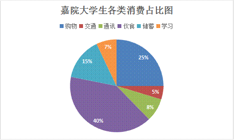 从这两幅图中,我们可以看出嘉院大学生总体消费合理,分配占比从大到小依次为伙食、购物、储蓄、通讯、学习、交通。