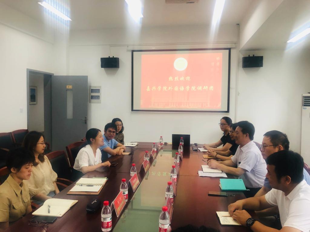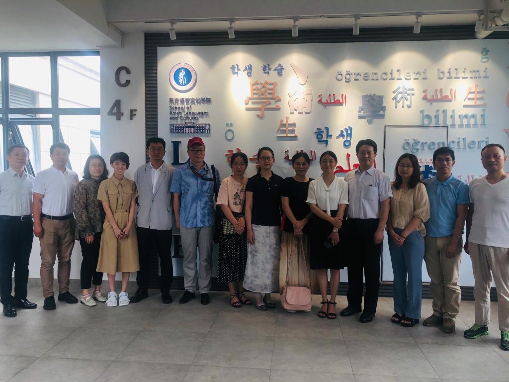 6月28日,91短视频 一行8名教师在副院长郭永恩带领下前往浙江91短视频 东方语言文化学院和浙江工商大学东方语言与哲学学院交流学习,学习两校外语教学文化体验中心建设经验,并就专业人才培养计划、师资队伍建设和实践教学进行了热烈的交流。