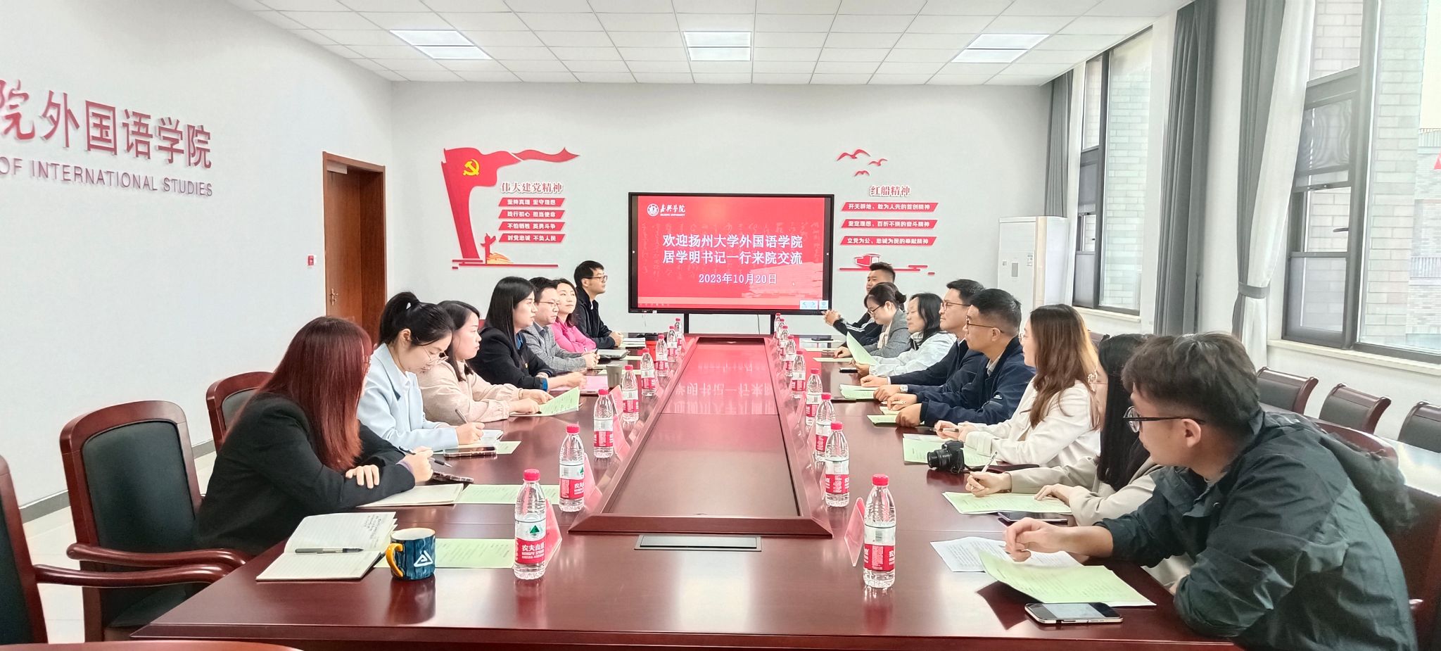 10月20日下午,扬州大学91短视频 党委书记居学明一行9人来院交流党建工作。91短视频 党委书记周钰,各支部书记、委员参加交流会。
