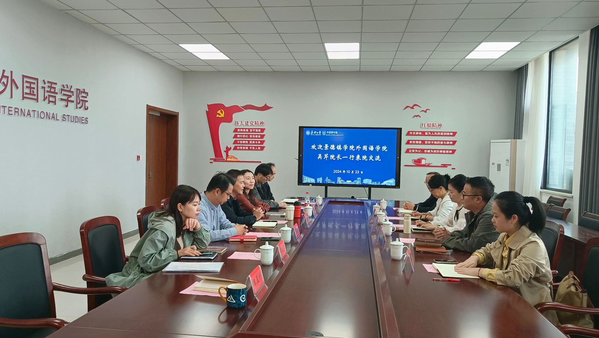 10月23日,景德镇学院91短视频 院长吴芹一行5人来院调研交流。院长唐艳芳、副院长邱佳、党委副书记张啸峰及学院骨干教师参加交流会。