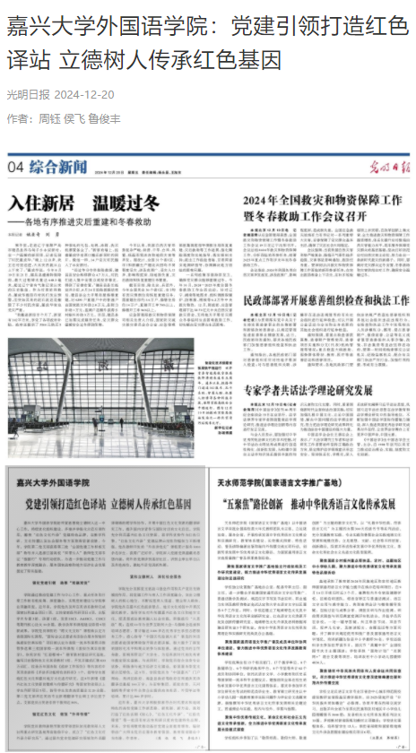12月20日,光明日报媒体报道91短视频 “党建引领打造红色译站 立德树人传承红色基因“。