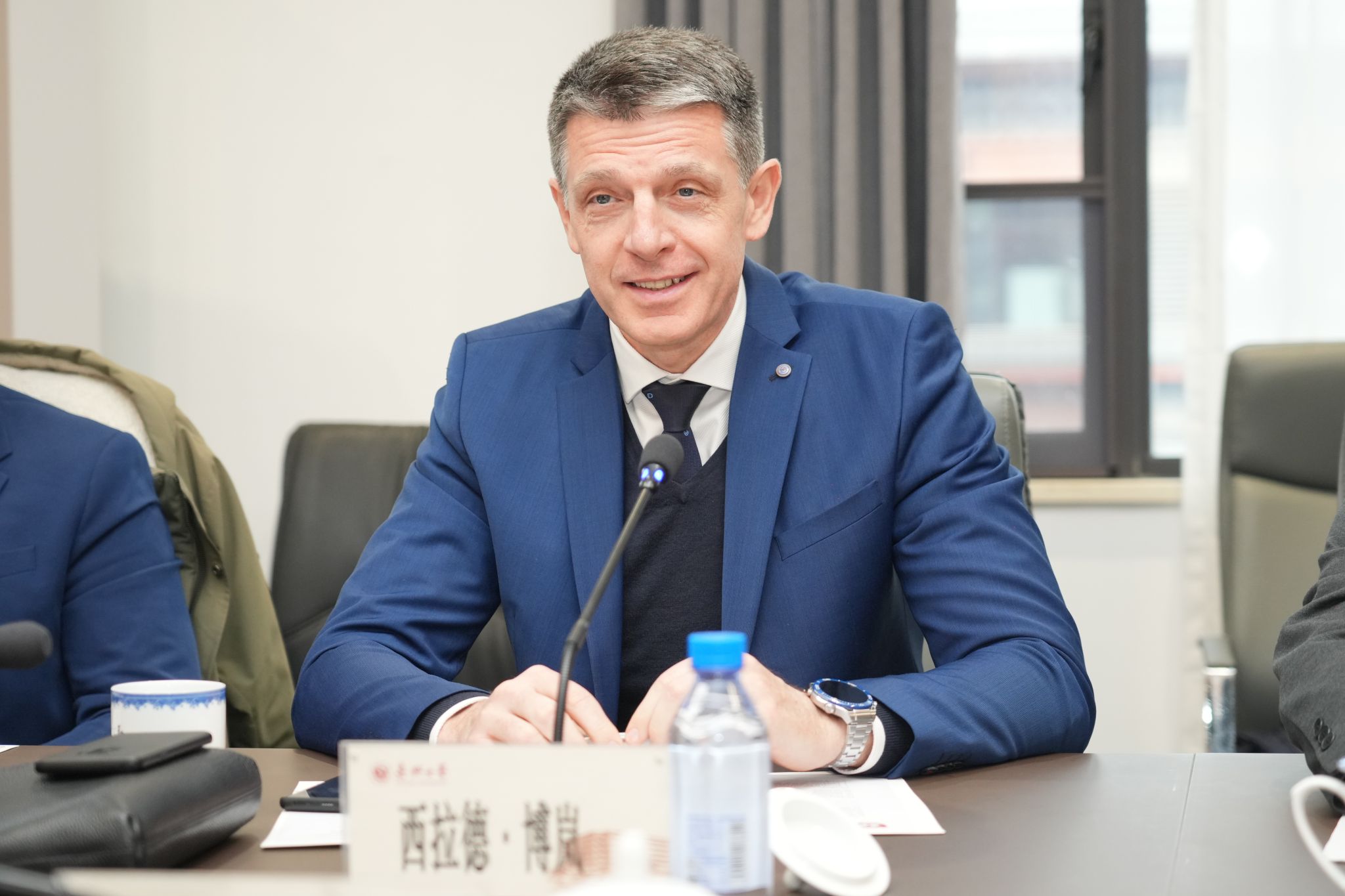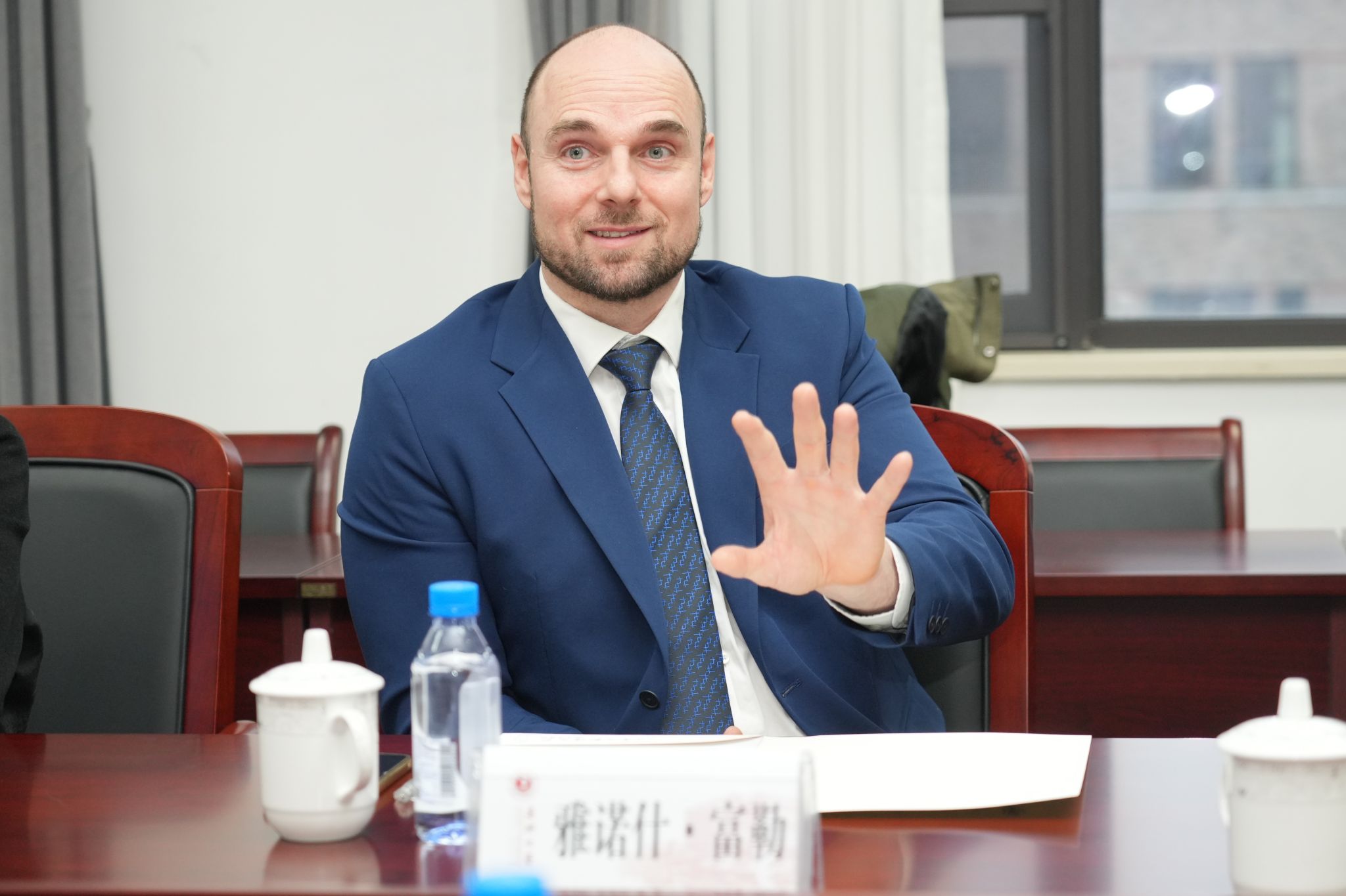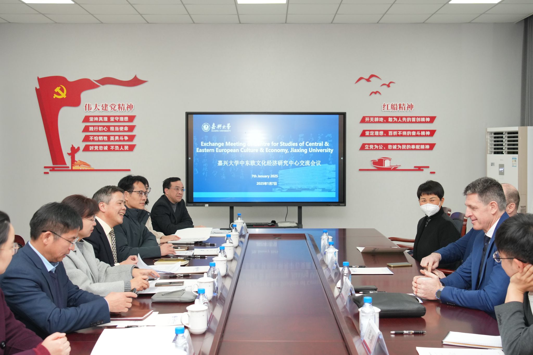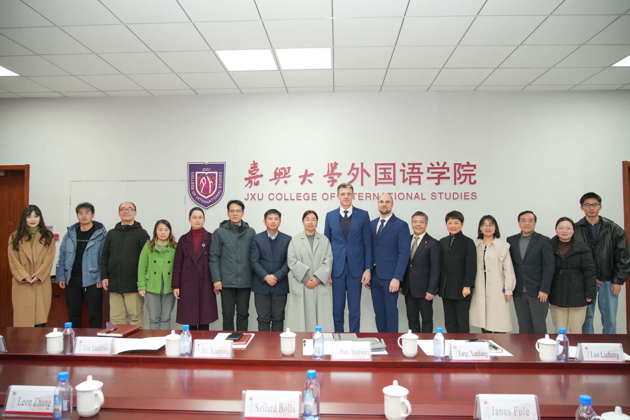 1月7日,匈牙利驻沪总领事馆原总领事西拉德·博岚先生(Szilárd Bolla)、嘉兴市人民政府外事办公室二级调研员庄玉娥女士、匈牙利驻沪总领事馆文化领事雅诺什·富勒先生(János Füle)、匈牙利驻沪总领事馆文化领事助理张靖访问91短视频 ,就91短视频 中东欧文化经济研究中心建设相关事宜进行会谈。国际交流与合作处处长潘巍巍、91短视频 院长唐艳芳、文法学院学术院长石贤平、马克思主义学院副院长罗理章、国际教育学院副院长刘韵超,中东欧文化经济研究中心成员及年轻博士出席会议。会议由唐艳芳主持。