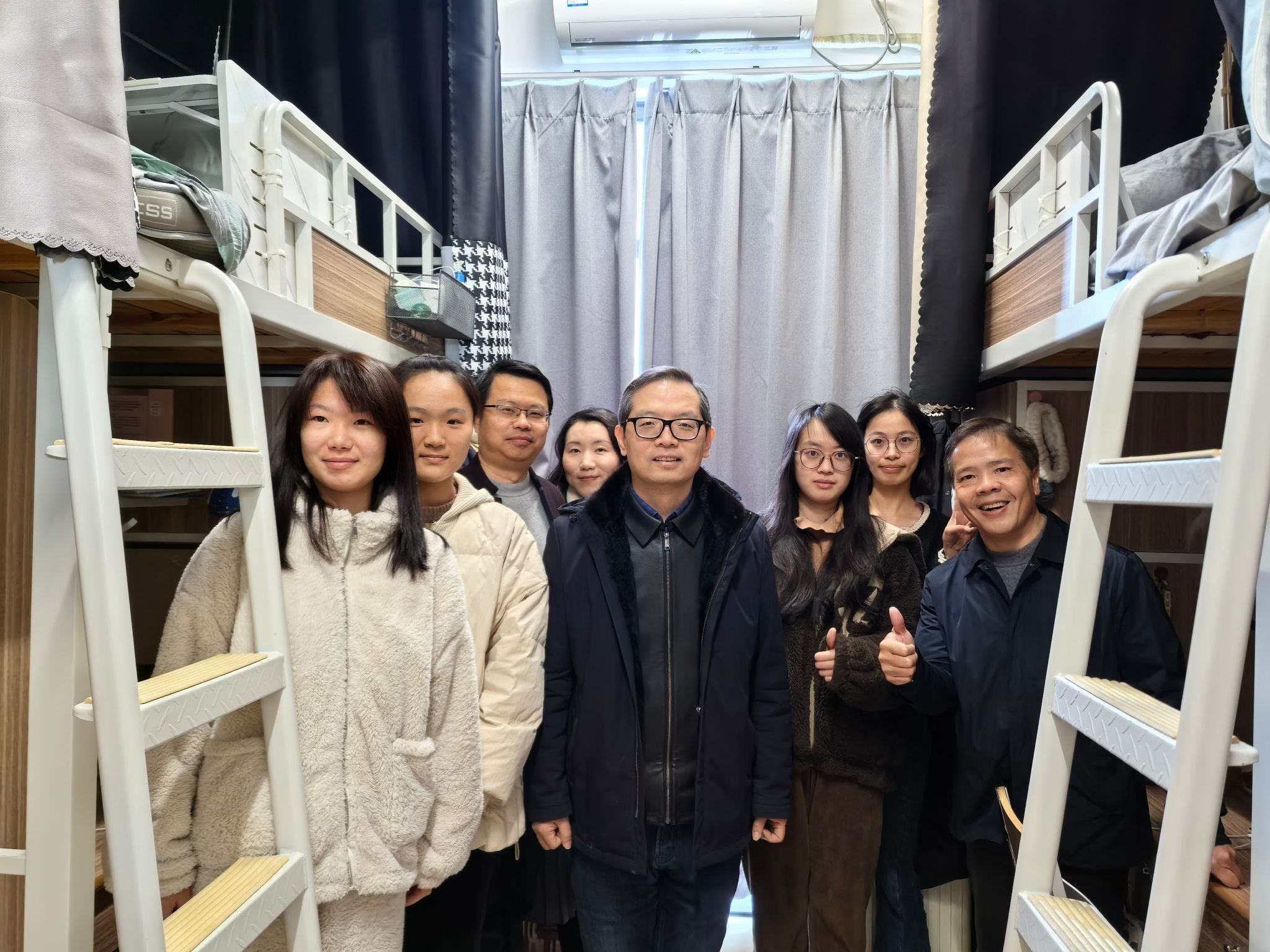 在学生寝室,周宏伟与同学们亲切交流,详细了解他们的学习生活情况。他鼓励同学们要珍惜大学时光,努力学习专业知识,不断提升自身综合素质,成为具有国际视野的优秀人才;叮嘱同学们注意人身安全,提高安全防范意识,时刻绷紧安全这根弦,度过一个平安、充实、快乐的学期。