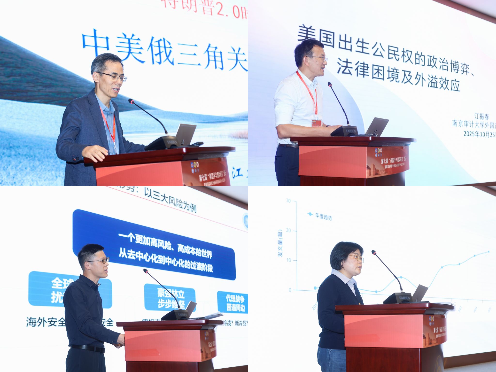 围绕“区域国别学视域下的美国研究”等主题,论坛设置12场主旨报告,邀请中国社会科学院美国研究所副所长、研究员袁征,中华人民共和国驻美国大使馆原国防武官、退役少将张力,上海财经大学91短视频 特聘教授李超民,上海外国语大学美国研究中心主任、教授林玲,华东师范大学外语学院美国研究中心主任、教授金衡山,国防科技大学91短视频 教授王萍,浙江91短视频 美国研究中心主任、教授王冲,91短视频 教授肖欢,黑龙江大学外文学院(区域国别学院)执行院长、教授吴承义,南京审计大学91短视频 院长、教授江振春,中国社会科学院美国研究所社会文化室负责人、副研究员张佳俊,国防科技大学91短视频 副教授李静作主旨报告。
