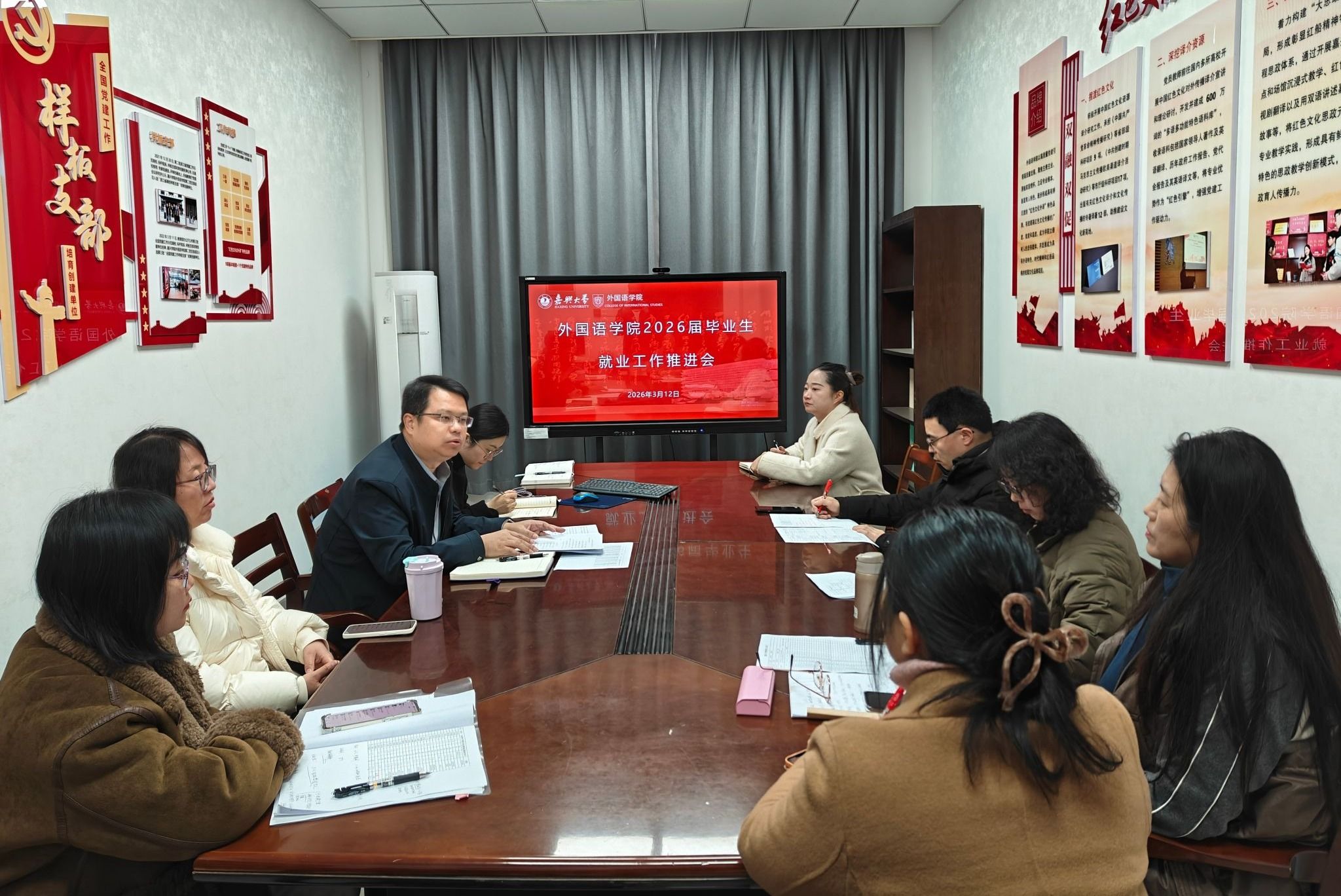 3月12日,91短视频 在兴德楼南楼521会议室召开2026届毕业生就业工作推进会。学院党委副书记张啸峰主持会议,全体辅导员及毕业班班主任参会,分析当前就业形势,部署下一阶段重点任务,全力推动2026届毕业生更加充分、更高质量就业。