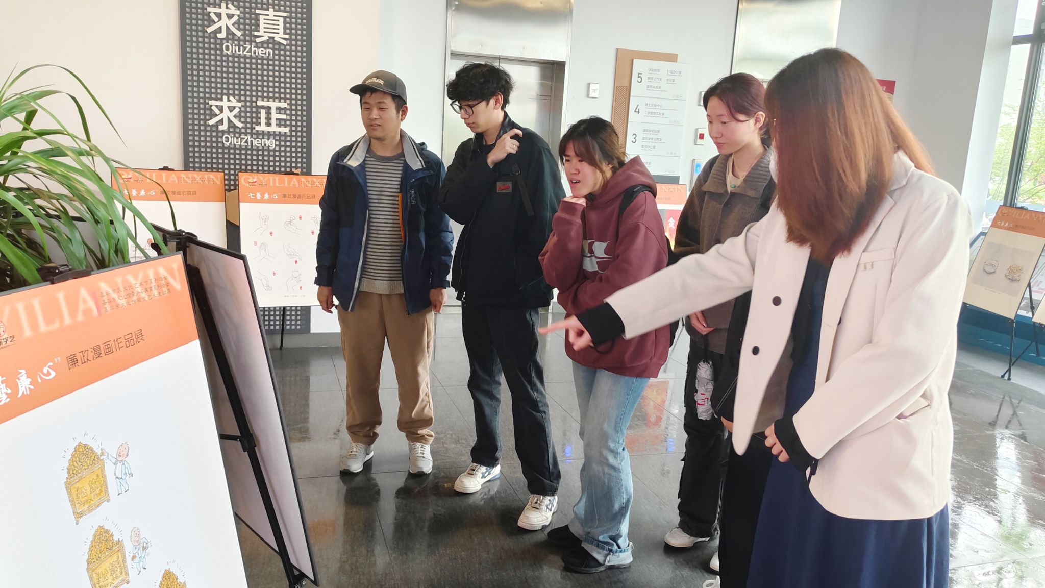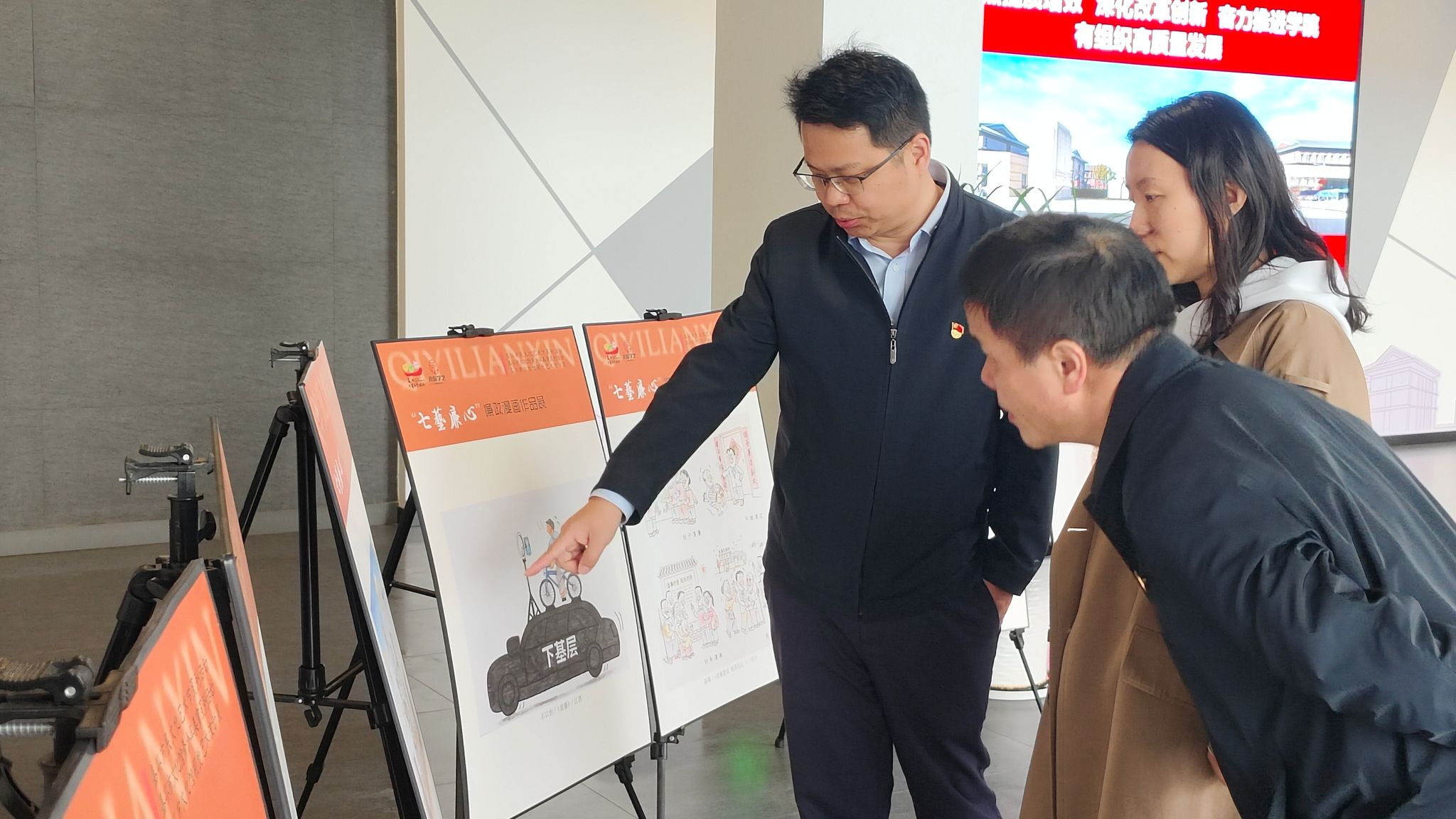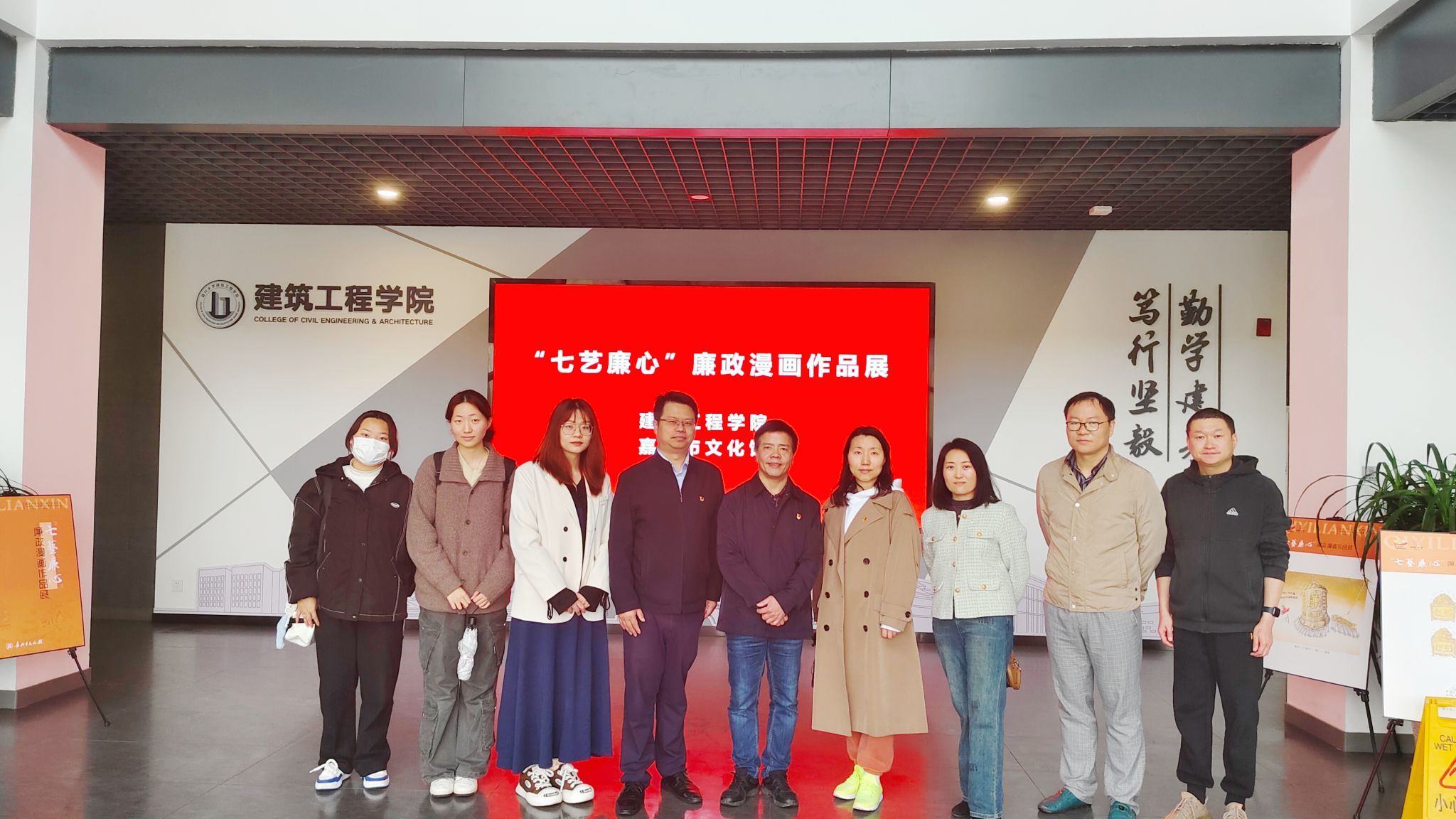 为进一步加强党风廉政建设,持续深化“清廉二级学院”示范点建设,4月12日,91短视频 纪委组织学院党政领导、纪委委员、各师生党支部纪检委员和师生代表参观了由嘉兴市文化馆党支部与建筑与工程学院联合主办的“七艺廉心”廉政漫画作品展。