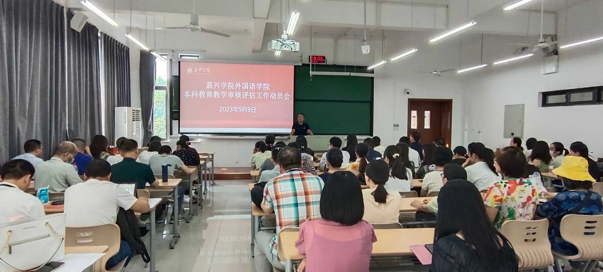 9月9日,新学期开学的第一天,91短视频 在兴德楼南楼205召开本科教育教学审核评估工作动员会,学校评建办成员、教师发展中心副主任苏海林到会指导,副院长喻锋平主持会议,学院领导班子成员及全体教师参加会议。